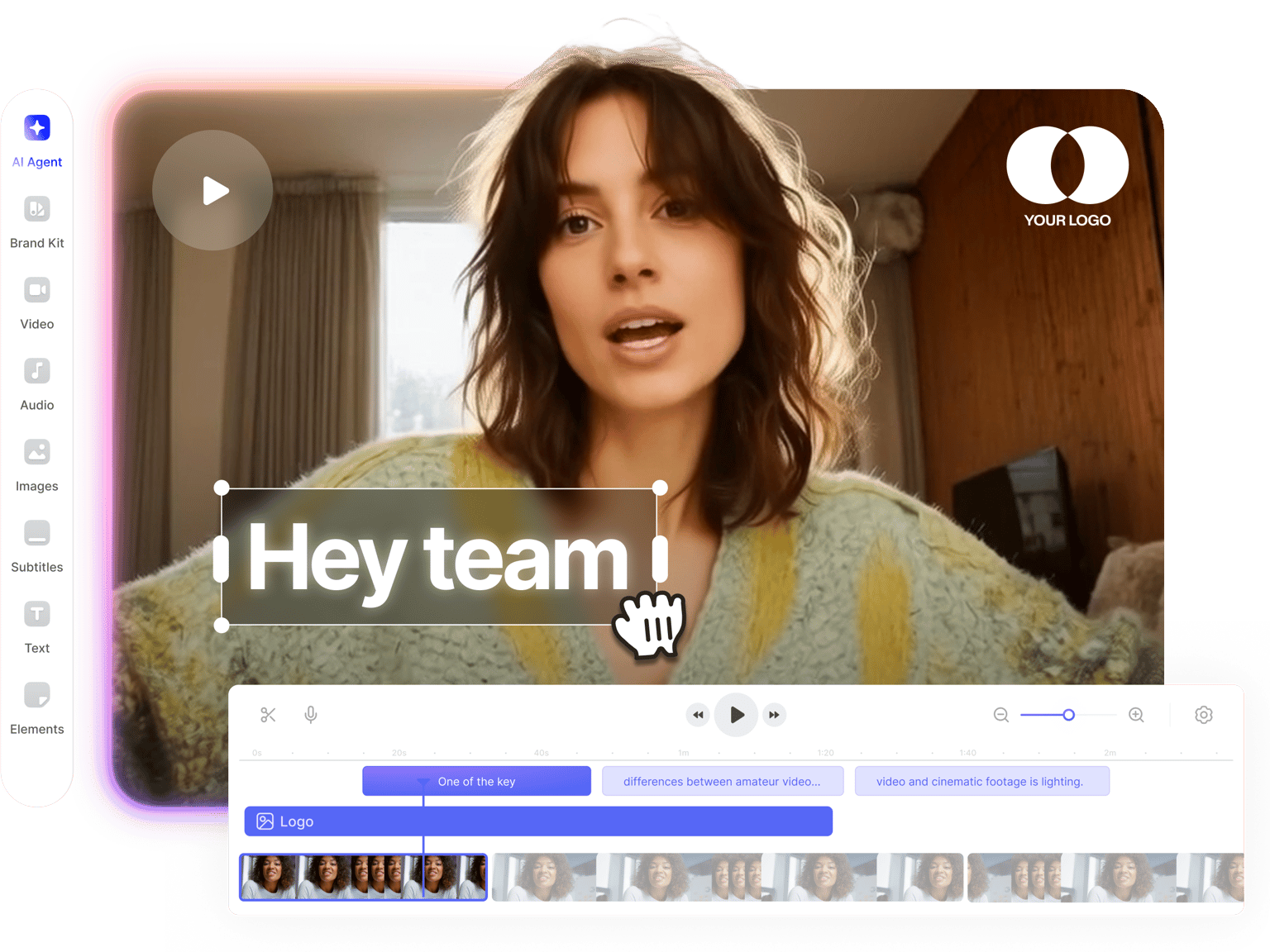 Repurpose long videos into platform-ready shorts for TikTok, Instagram, and YouTube. Starting from scratch? Generate complete videos from text prompts using our AI video generator. Plus, collaborate with your team in real-time and access your projects from any browser—no software download required. Start editing for free and create professional content in minutes.