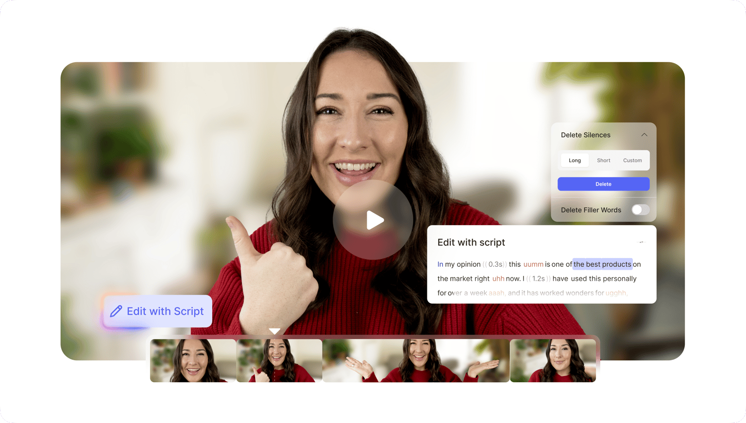 Repurpose long videos into platform-ready shorts for TikTok, Instagram, and YouTube. Starting from scratch? Generate complete videos from text prompts using our AI video generator. Plus, collaborate with your team in real-time and access your projects from any browser—no software download required. Start editing for free and create professional content in minutes.