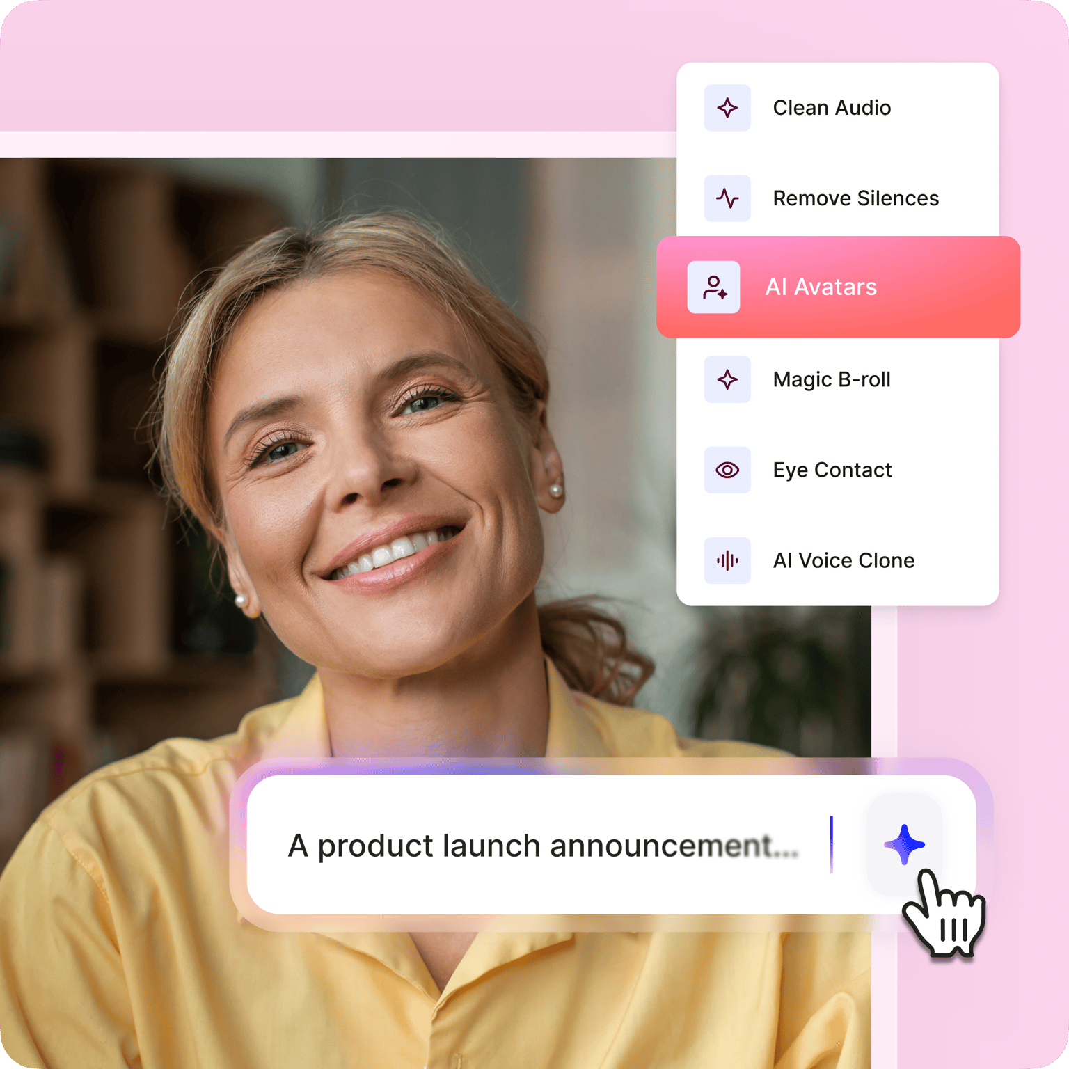 Repurpose long videos into platform-ready shorts for TikTok, Instagram, and YouTube. Starting from scratch? Generate complete videos from text prompts using our AI video generator. Plus, collaborate with your team in real-time and access your projects from any browser—no software download required. Start editing for free and create professional content in minutes.